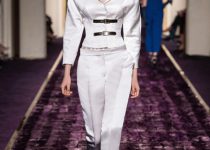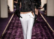 Về phụ kiện, những đôi găng tay bằng chất liệu da ton-sur-ton cùng trang phục; kết hợp cùng những đôi xăng-đan thanh mảnh trang trí với chốt kim loại sáng bóng hay vòng cổ cá tính đã thực sự mang đến những sắc màu sinh động cho BST Atelier Versace Thu Đông 2014.