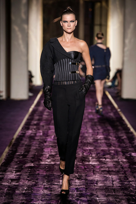Góp phần tạo điểm nhấn độc đáo cho những mẫu thiết kế đầm dạ hội, jumpsuit hoặc áo khoác là những chi tiết phụ trợ như tua rua được làm từ chất liệu da mềm, pha lê hay hạt cườm trang trí trên phần áo ngực hoặc bên hông theo phong cách bất đối xứng (asymmetric).