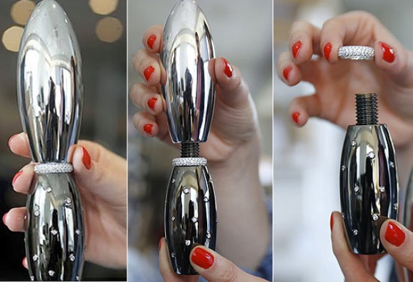 Là đứa con tinh thần của một nghệ nhân đồ trang sức Paris, dụng cụ này được tráng ngoài bằng vàng trắng, gồm hai phần có thể tháo rời. Được thiết kế dành riêng cho giới nhà giàu muốn tìm kiếm sự khác biệt nơi chốn phòng the, món đồ chơi – trang sức này có nhiều kích cỡ để khách hàng có thể lựa chọn. Điểm nhấn nổi bật của sản phẩm là một chiếc nhẫn kim cương gồm 177 viên 18 carat nối giữa hai phần thân “ấy”. Bạn có thể đeo trên tay chiếc nhẫn này sau khi sử dụng xong cái “ấy” như một chiếc nhẫn kim cương đẹp tuyệt. Nhiều kim cương như thế nên cái giá của nó cũng không hề nhỏ: 59.154 USD (khoảng 1 tỉ 2 trăm triệu đồng).