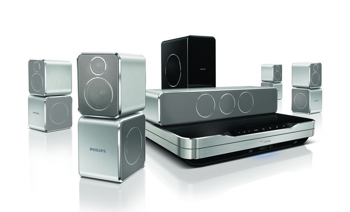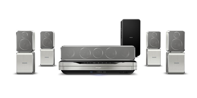 Các loa con với kiểu thiết kế phá cách “2 in 1” độc đáo, khỏe khoắn thực sự gây được ấn tượng mạnh. Mỗi loa (front và suround) có tới 4 loa con, trong đó loa treble dome (2,5 cm) và loa midbass (6 cm) nằm ở mặt trước, 2 loa midbass dạng toàn dải nằm ở 2 mặt bên, giúp tạo ra một trường âm thanh thực sự bao bọc lấy người xem. Philips đã dùng một thuật toán độc quyền của hãng giúp gia tăng các hiệu ứng âm thanh, loại bỏ tạp âm và giảm thiểu hiện tượng dội âm trong phòng nghe.