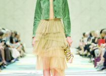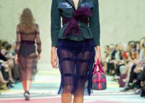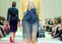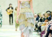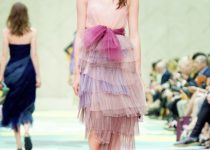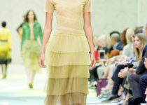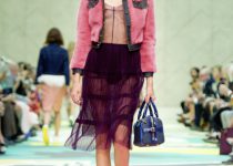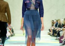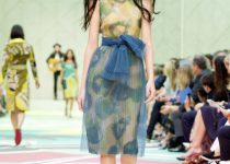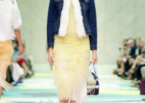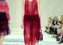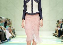 Lựa chọn chất liệu nổi bật của BST Burberry Prorsum Nữ Xuân Hè 2015 là chất liệu vải tuyn (tulle) được xử lý xếp li rất nữ tính. Không chỉ hiện diện trên những mẫu chân váy, chất liệu vải tuyn còn được buộc thắt nơ tạo thành đai lưng “Dragonfly Belts” vô cùng độc đáo.