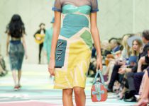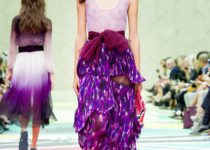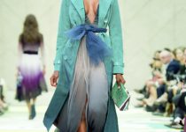 Tiếp nối BST Resort 2015, kỹ thuật nhuộm dip-dyed (cách nhuộm tạo sắc độ đậm nhạt khác nhau) tiếp tục được NTK Christopher Bailey khai thác. Đó là thiết kế áo liền váy gợi nhớ phong cách “Ossie Clark Vibes” hay những khóm màu chấm phá trên nền chân váy lạ mắt.