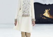 Xen kẽ những mẫu thiết kế đột phá là sự hiện diện của những thiết kế trứ danh gắn liền với nhà mốt Chanel, điển hình như những mẫu skirt suit hoặc mẫu áo khoác “Little black jacket” được biến tấu với những đường cắt mới mẻ đặc biệt ở bố cục áo, gấu áo hoặc phần cổ áo.