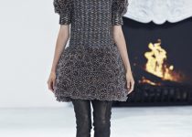 Chất liệu được xử lý ấn tượng, ứng dụng kỹ thuật xé rách (tatter) hoặc mài mòn mặt vải, góp phần mang đến cái nhìn thoáng hơn đối với những mẫu thiết kế thuộc dòng Couture vốn chỉn chu. Bên cạnh đó, chất liệu cho BST mùa này còn có vải lông vũ hoặc vải tuyn (tulle) xuyên thấu.