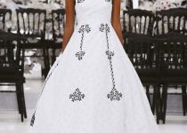 Ở nhóm đầu tiên, người mẫu bước ra trong trang phục đầm dạ hội may bồng, xòe rộng phần chân váy gợi nhớ hình ảnh nữ hoàng Marie Antoinette của Pháp. Điểm nhấn của những mẫu đầm này là mô-típ hoa lá được thêu tay thủ công đầy tinh xảo trực tiếp trên bề mặt vải.