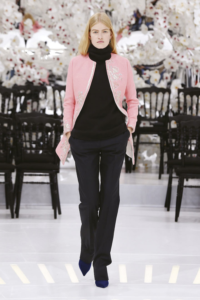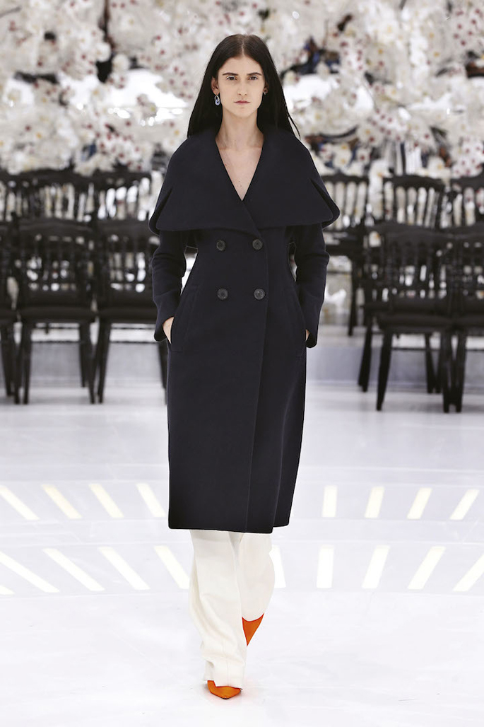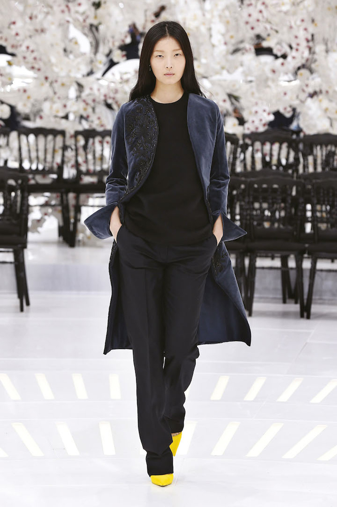 Áo khoác là một phần không thể thiếu của mùa đông và BST Christian Dior Haute Couture Thu Đông 2014 cũng không ngoại lệ. Thiết kế áo khoác mùa này lấy cảm hứng từ thời kỳ Edwardiana (khoảng thời gian trị vì nước Anh của nhà vua Edward VII từ năm 1901 đến 1910) trên nền những chất liệu len dạ hay lông thú. Áo được may gọn, ôm lấy người mặc.