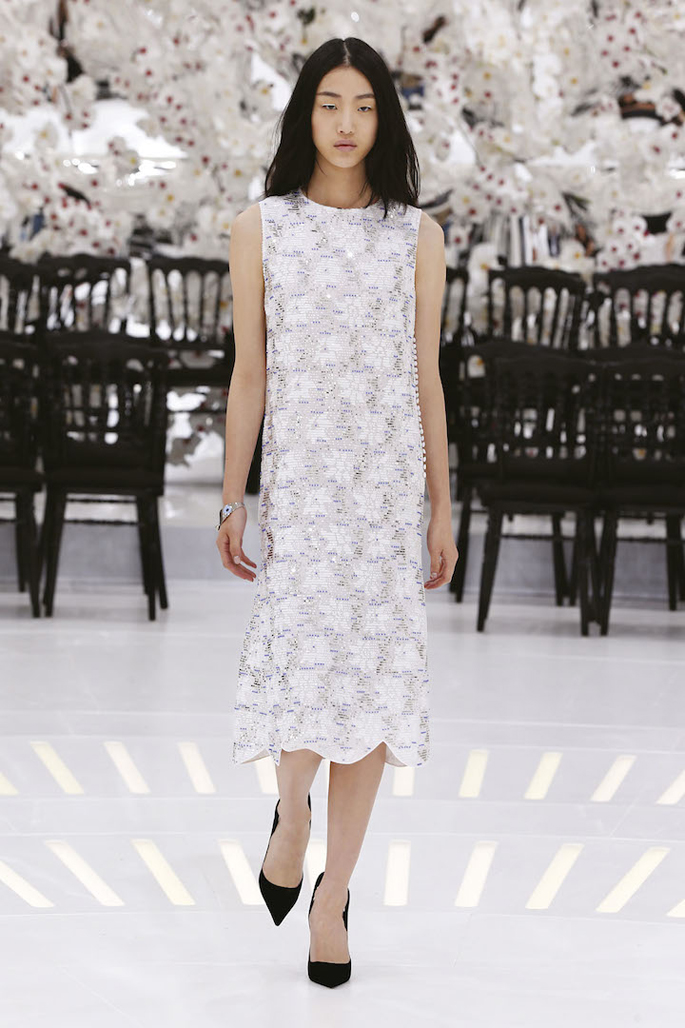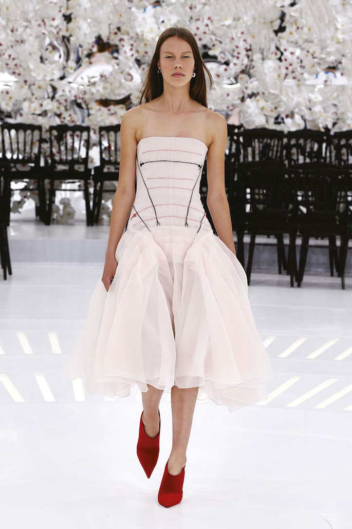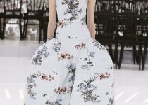 Toàn bộ không gian trình diễn bộ sưu tập (BST) Christian Dior Haute Couture được thiết kế hình vòng cung theo phong cách tối giản. Toàn bộ phần sàn diễn được bố trí đèn chiếu từ phía dưới lên. Trên tường, những bông hoa to bản được đính tạo nên tấm thảm hoa tuyệt đẹp.