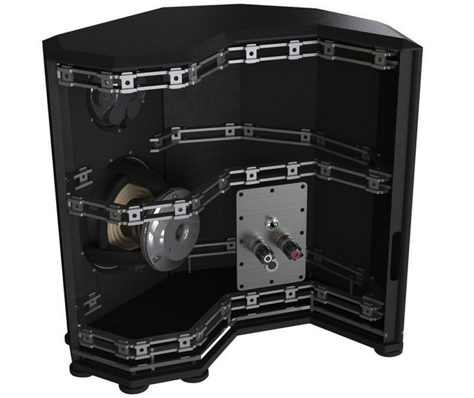 Vỏ loa Arabesque Mini được ghép bởi các tấm aluminum (nhôm) dầy từ 8 -15mm, liên kết bằng keo và bốn bộ đai đặc biệt cũng làm từ aluminum giấu bên trong thùng. Trọng lượng của Arabesque Mini là 18kg, nặng hơn nhiều so với các cặp loa bookshelf thông thường. Thùng loa làm từ aluminum và thủy tinh luôn cho thứ âm thanh có tốc độ rất cao, đảm bảo được sự chính xác tối đa từ nguồn phát. Việc thùng loa có nhiều hơn bốn mặt phẳng và không hề song song với nhau cũng để giảm thiểu nhiễu âm và sóng đứng trong thùng.