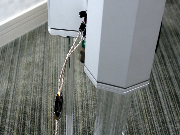 Dây loa được kết nối với cặp loa Arabesque Mini, cũng của Crystal Cable