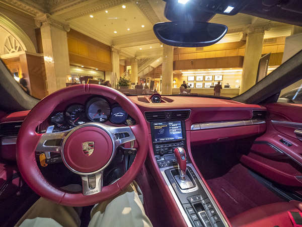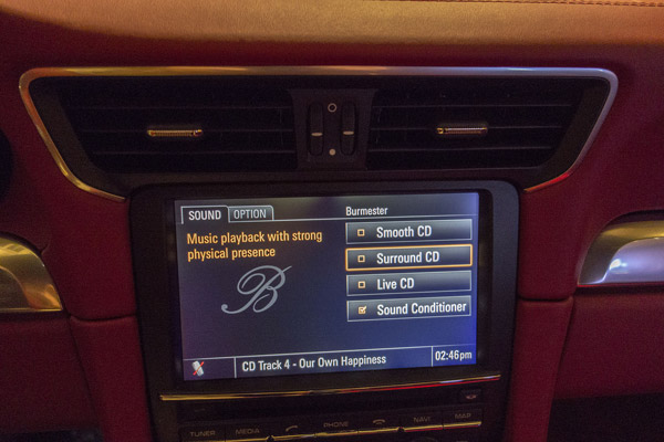 Chiếc Porsche 911S nằm ở ngay giữa sảnh lớn đã gây ra sự tò mò cho tất cả mọi người. Tuy nhiên, hẳn audiophile nào cũng muốn sở hữu chiếc xe thể thao này khi biết nó được trang bị hệ thống âm thanh trị giá 20.000 USD của Burmester, với 4 chế độ khác nhau. Âm thanh đúng là rất ấn tượng. Tổng giá trị của xe sau khi có bộ dàn là 114.000 USD.