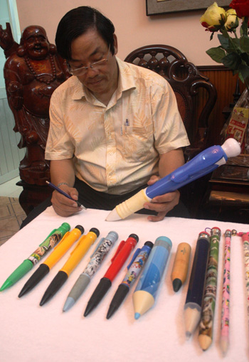 Bác sĩ Nguyễn Văn Xáng đã dành 17 năm nay để tích cóp những mẫu bút lạ, độc đáo, cổ thành một bộ sưu tập đặc biệt. Trong số 1.500 cây bút của ông có chiếc gần 70 năm tuổi, có cây giá hàng nghìn đô-la.