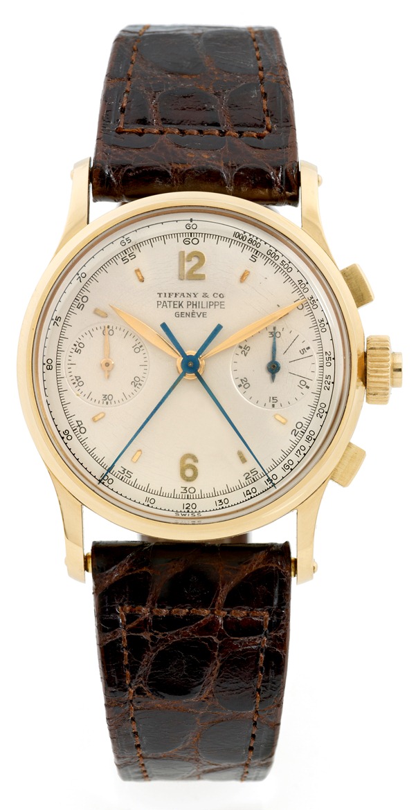Chiếc Patek Philippe “chia giây” mã hiệu 1436 được sản xuất năm 1960 và bán bởi công ty Tiffany. Đây là đồng hồ vỏ vàng 18K với mặt đồng hồ có thể chuyển động. Đồng hồ có chức năng chia giây (có 2 kim giây xoay cùng nhau, một kim có thể chạy được và dừng lại độc lập để ghi thời gian) và đo tốc độ. Nhà đấu giá hiện đang định giá chiếc đồng hồ vào khoảng từ 4,16 – 6,24 tỷ đồng (200.000 – 300.000 USD).