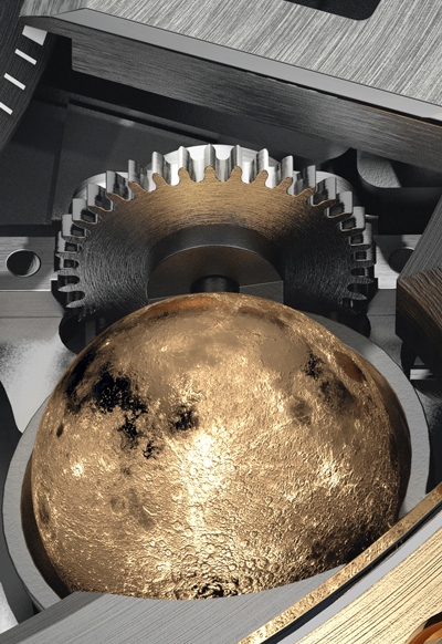 Loại đồng hồ này còn có chức năng xem chu kỳ trăng rất độc đáo. Mặt trăng trên đồng hồ là quả cầu vàng có các chi tiết chạm khắc giống như bề mặt của mặt trăng thật. Đồng hồ định vị được chính xác vị trí của mặt trăng, chuyển động của quả cầu cũng giống hệt như chuyển động của mặt trăng – phần tối trên mặt trăng sẽ được che phủ bằng một khối kim loại đen quay theo đúng chu kỳ.