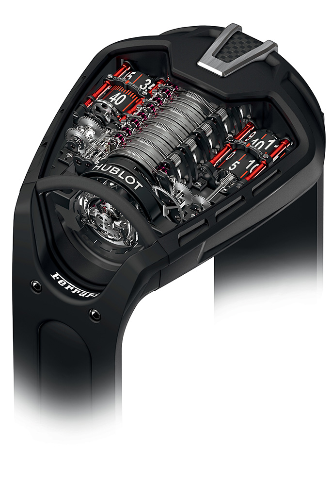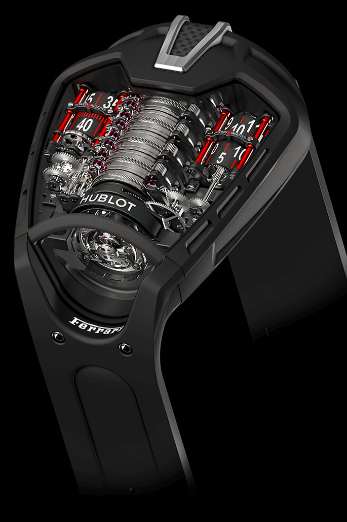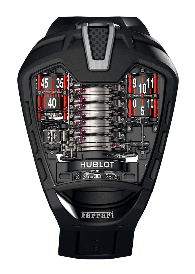 LuxeVN: Hublot Masterpiece MP-05 “LaFerrari” được phát triển – về mặt kỹ thuật và thiết kế – song song với chiếc xe LaFerrari, cùng với đội thiết kế của Ferrari. Hublot và Ferrari đã cùng nhau chia sẻ một số điểm chung trong đó có cả thiết kế rất độc đáo của đồng hồ và cả bộ máy hoạt động có thời gian dự trữ năng lượng kỷ lục.