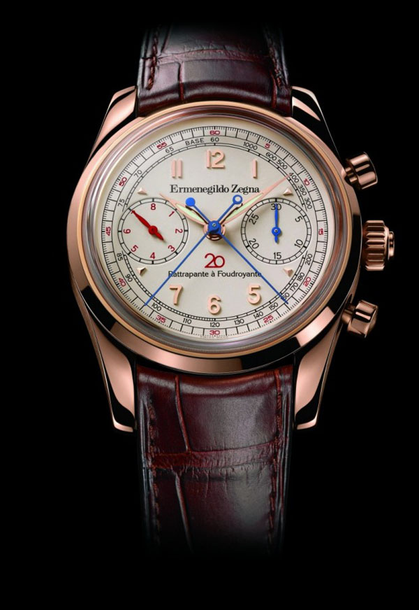 Đây là đồng hồ có bộ đôi kim giây có thể tính thời gian chính xác tới 1/2 giây hoặc 1/8 giây. Ermengildo Zegna được sản xuất đặc biệt hướng đến thị trường Trung Quốc.