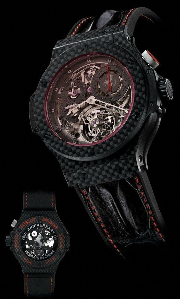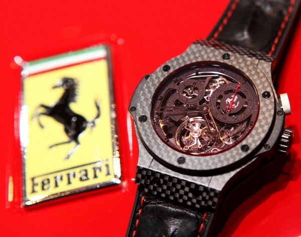 Đây là lần đầu tiên Ferrari kết hợp với Hublot để giới thiệu mẫu đồng hồ có cảm hứng từ siêu xe. Chiếc đồng hồ mang tên Hublot Big Bang Chrono Tourbillon Ferrari vừa được ra mắt tại Trung Quốc.
