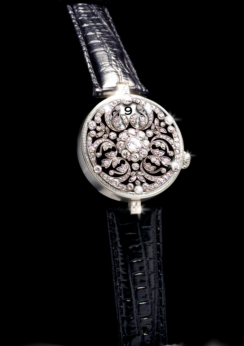 MP – Khách hàng đặt làm sản phẩm khó nhất là một công chúa Ả rập Xêut. Chúng tôi gặp nhau 1 hoặc 2 lần trong năm để xem xét các phác thảo của cô ấy để tạo ra những chiếc đồng hồ và trang sức ngoài sức tưởng tượng. Một trong những sản phẩm khó nhất là chiếc đồng hồ Belle Époque. Đây là đồng hồ hiển thị số được trang trí với một mề-đay theo thời kỳ Belle Époque (“Thời kỳ tươi đẹp“, để chỉ một giai đoạn chủ yếu ở châu Âu từ khoảng cuối thế kỷ 19 tới cho năm 1914, trước khi nổ ra Thế chiến thứ nhất). Chiếc đồng hồ này được trang trí bằng hàng nghìn hạt kim cương với tổng trọng lượng lên tới gần 8 carat kim cương được cắt theo kiểu cũ.