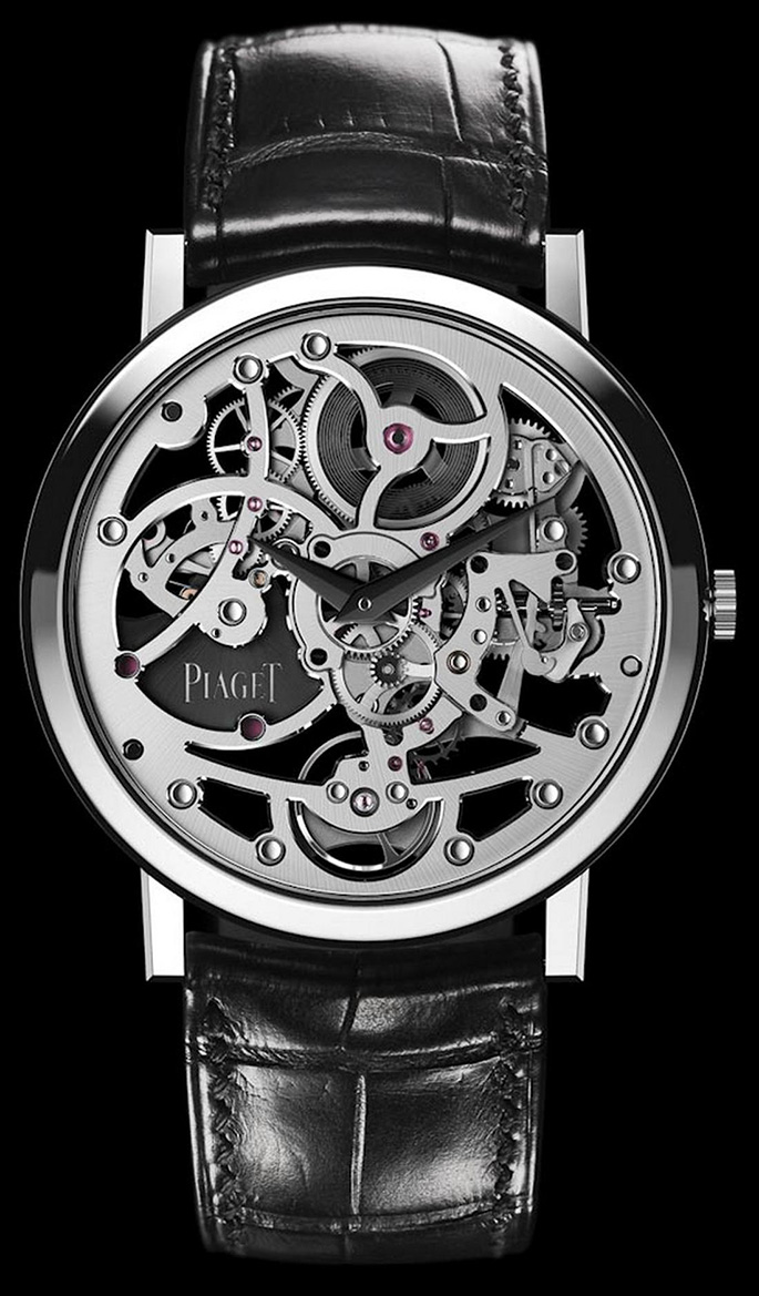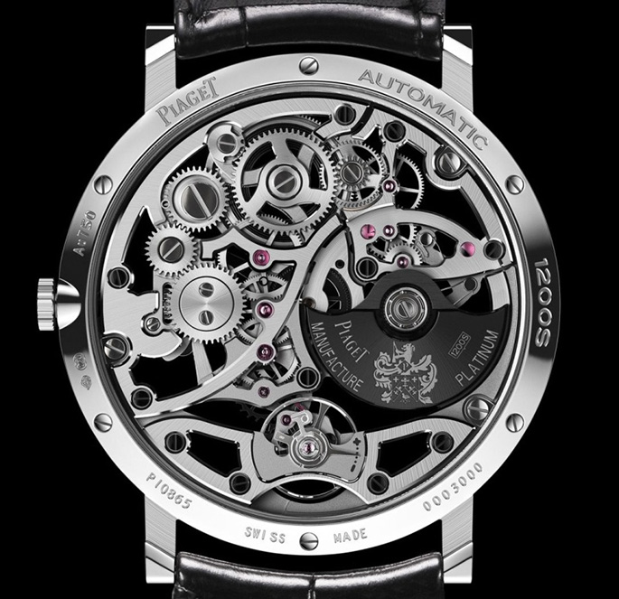 Chiếc đồng hồ này có vỏ được làm bằng vàng trắng 18K, đường kính 38mm và cả 2 mặt đồng hồ đều có thể chiêm ngưỡng rõ hoạt động của máy đồng hồ. Altiplano Automatic 38mm Skeleton sử dụng bộ máy tự động lên dây siêu mỏng Piaget 1200S (2,40mm) 26 hạt chân kính, 21.600 dao động/giờ và dự trữ năng lượng trong 44 giờ.