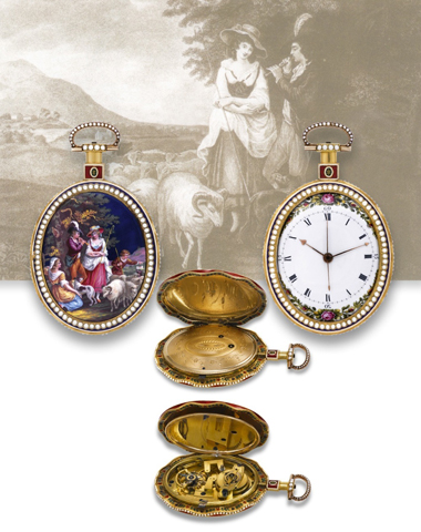 Mặt đồng hồ xứng đáng là một kiệt tác kim hoàn được làm từ men cao cấp cẩn đá quý, kim loại quý và kim cương.