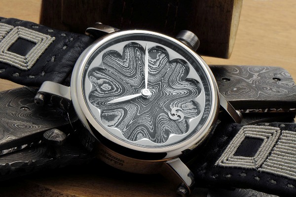 Vấu lồi của chiếc đồng hồ được làm bằng thép Damacus đồng bộ với núm vặn cỡ lớn có bản quyền riêng của GoS. San hô tiền sử của vùng Ban Tích có những đường hoa văn tương tự với loại hoa văn mới của thép Damacus – vật liệu mà Johan chọn để làm dao. Những đường hoa văn mới phát triển được GoS gọi là “hoa dại” – được chọn làm hoa văn cho mặt đồng hồ.