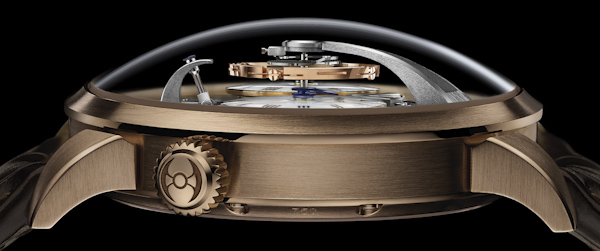 Bộ phận con lắc là chi tiết thú vị nhất trên mặt đồng hồ nhưng đi kèm với nó còn có bộ phận chỉ năng lượng dự trữ nằm theo chiều thẳng đứng đầu tiên trên thế giới. Bộ phận này nằm ở vị trí 6 giờ, với cách thức chỉ là một bộ phận chạy theo thang cong đứng trên mặt đồng hồ.