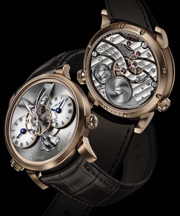 MB&F Legacy Machine No.1 là đồng hồ có bộ phận chỉ năng lượng dự trữ theo chiều thẳng đứng đầu tiên trên thế giới, đi cùng với bộ cuốn xoay và con lắc nằm trên mặt đồng hồ nó tạo ra một trải nghiệm thời gian 3 chiều.