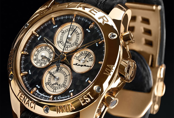 Spyker được biết tới là chuyên gia về những chiếc xe đua đã giới thiệu chiếc đồng hồ với những chi tiết giống như bảng điều khiển của xe. Rất nhiều phiên bản đồng hồ được tạo ra trong đó có vàng hồng, vàng xám và thép. Chức năng đáng chú ý là máy đồng hồ có chức năng đo giờ Valjoux cùng với các chi tiết trang trí mang cảm hứng Spyker trên máy và rotor. Mỗi chiếc đồng hồ đều được đánh số theo số khung xe của chủ sở hữu. Giá của phiên bản thép là 240 triệu đồng (11.455 USD), còn giá của các phiên bản vàng vào khoảng 588 triệu đồng (28.645 USD).