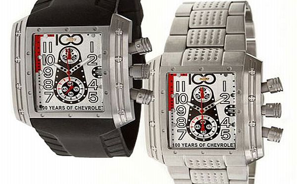 Chevrolet – hãng ô tô được sáng lập bởi một người Thụy Sĩ đã kỷ niệm 100 năm ngày sinh của mình với một mẫu đồng hồ được sản xuất với số lượng hạn chế với các chi tiết mang đầy cảm hứng từ những chiếc xe Chevrolet. Máy đồng hồ được phát triển dựa trên máy đồng hồ đo bấm giờ của Miyota, mặt đồng hồ có các chi tiết giống như bảng điều khiển của ô tô và núm vặn giống như pít-tông. Các chi tiết đó kết hợp với đường viền vỏ đồng hồ gợi nên cảm giác về động cơ xe nằm trên cổ tay. Ngoài ra tại vị trí 12 giờ còn có logo kỷ niệm 100 năm Chevrolet.