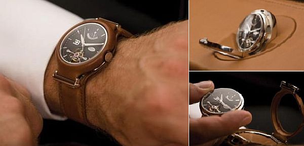 Chiếc đồng hồ này là của Bugatti – hãng tạo ra những siêu xe nhanh nhất. Đồng hồ có mặt trên thị trường từ năm 2004 và mới có những tahy đổi gần đây. Phiên bản mới của đồng hồ có vỏ bằng vàng hoặc platinum đi cùng với những dấu khắc mang biểu tượng của Bugatti. Thiết kế của đồng hồ cho phép đặt được ở trung tâm của bảng điều khiển, bàn làm việc, trong túi và quan trọng nhất là cổ tay của chủ nhân.