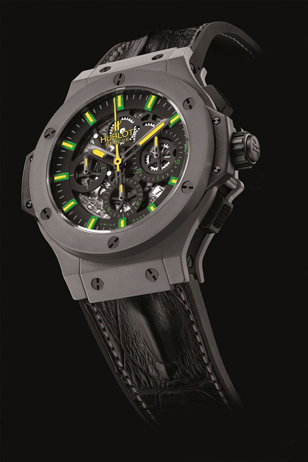Aero Bang Niemeyer được làm từ nguyên tố tantan vì thế nó mang một màu đen mờ lịch thiệp kết hợp với mặt đồng hồ cắt skeleton để lộ bộ máy phức tạp tuyện đẹp HUB4214 của Hublot. Màu vàng và màu xanh lá cây hiện lên trên những chữ số và kim đồng hồ nhằm mang lại cảm giác rõ nét về những màu biểu tượng của đất nước Brazil. Trong một buổi ra mắt với khách mời hạn chế tại tư gia của kiến trúc sư Niemeyer (vùng Copacabana, Rio de Janeiro), giám đốc khu vực châu Mỹ Latin của Hublot – Rick Delacroix đã vinh dự giới thiệu vị kiến trúc sư huyền thoại cùng chiếc đồng hồ mang số 104/104 – chiếc cuối cùng trong loạt đồng hồ Aero Bang Niemeyer.