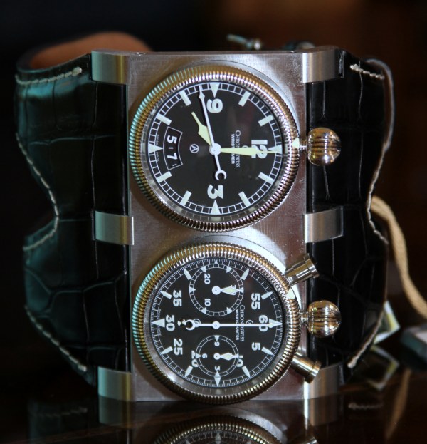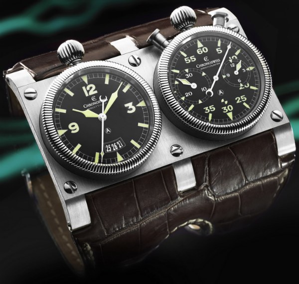 Đây là đồng hồ được tạo ra bởi 2 bộ máy đặt song song, chúng mang phong cách của những chiếc đồng hồ xuất hiện trên các loại xe và máy bay cổ điển.