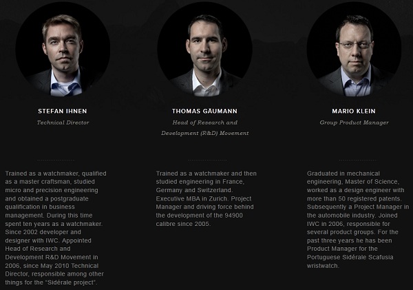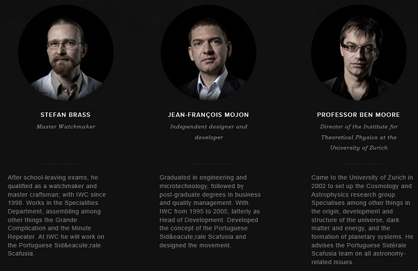 IWC có nhóm 6 nhân vật chính chế tạo ra chiếc đồng hồ mới. Trong đó, bao gồm cả nghệ nhân làm đồng hồ rất nổi tiếng Jean-Francois Mojon – người không thuộc IWC nhưng đã ký hợp đồng với hãng để hoàn thành dự án về chiếc Portuguese Sidérale Scafusia.