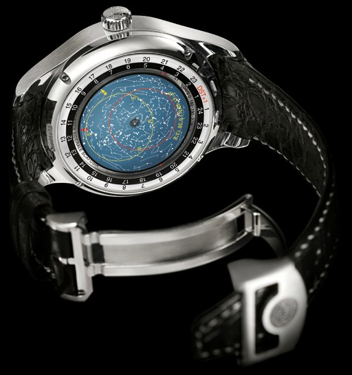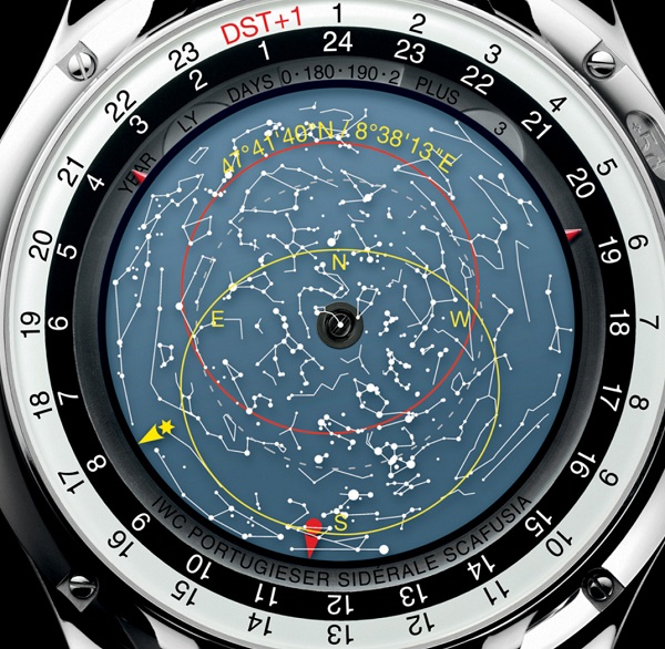 Một chi tiết phức tạp hơn nằm ở mặt sau đồng hồ là nơi chỉ dữ liệu thiên văn. Tại đây, bạn cũng sẽ tìm thấy bộ lịch vạn niên nhỏ nhất thế giới. Bản đồ thiên văn lớn đặt trên nền trời do người dùng chọn. IWC thông báo bản đồ này có thể chỉ chính xác vị trí của 500 – 1.000 ngôi sao. Bản đồ này chuyển động và cho biết bầu trời thay đổi thế nào từ vị trí của người dùng đang đứng trên trái đất…