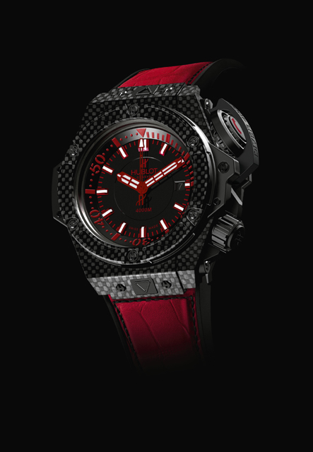 Đồng hồ lên dây tự động có vỏ bằng sợi các-bon và titanium, có thể chịu nước được tới độ sâu 4.000m.