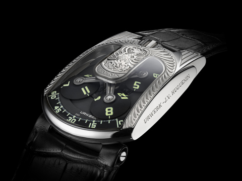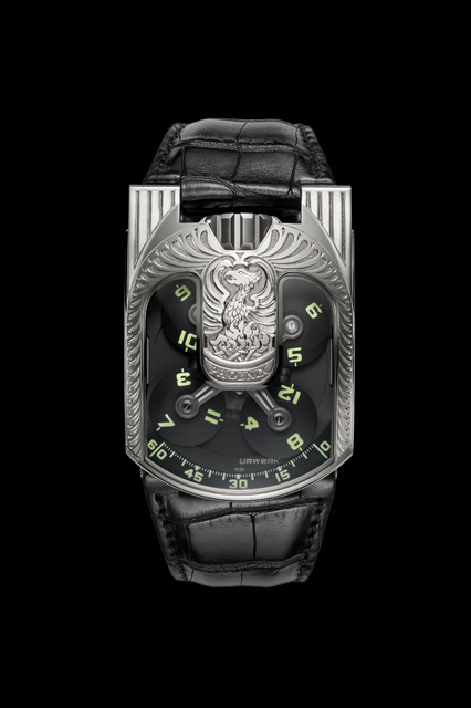 Đồng hồ có thiết kế mang cảm hứng tương lai với vỏ bằng vàng trắng 18K và titanium. Trên đồng hồ có điêu khắc hình phượng hoàng do nghệ sĩ nổi tiếng Jean-Vicent Huguennin thực hiện.