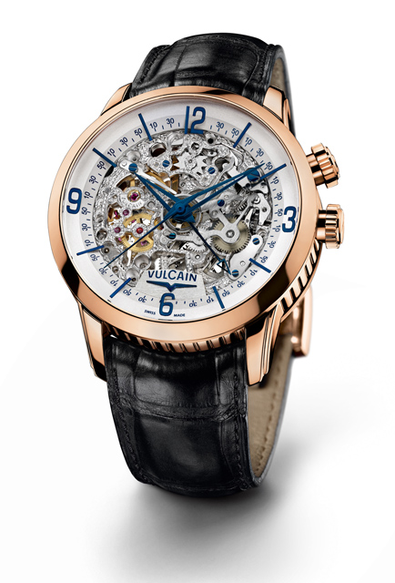 Đồng hồ có chức năng báo thức, mặt cắt skeleton, vỏ đồng hồ bằng vàng hồng 18K.