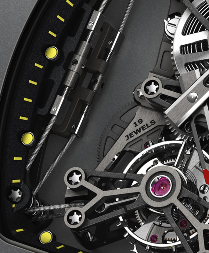 Đồng hồ được sản xuất với số lượng giới hạn 50 chiếc, với vỏ được làm bằng carbon và có 4 sợi dây cáp bằng thép đường kính 0,35mm được bện bên trong. Bộ máy hoạt động của Tourbillon RM 27-01 được làm từ titan và LITAL®, một hợp kim liti có chứa nhôm, đồng, magiê và zirconi với mật độ 2,55.