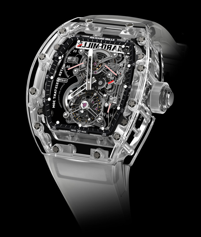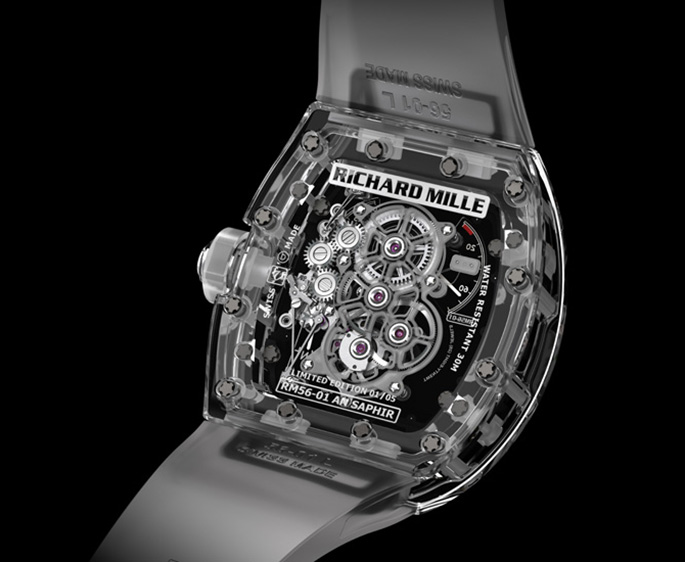 Theo nhà sản xuất, toàn bộ việc gia công vỏ đồng hồ yêu cầu 40 ngày làm việc, 24 giờ 1 ngày và đó chỉ là thời gian để làm một chiếc vỏ. Caliber RM56-01 được làm từ tinh thể sapphire và titan, có khả năng chống chịu sự thay đổi của nhiệt độ và hao mòn, đảm bảo sự ổn định tuyết đối và chất lượng tuyệt vời.