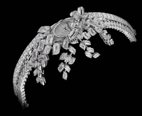 Đồng hồ đeo tay cho phụ nữ có kiểu dáng dài hình baguette cổ điển của hãng hiện lên rất rõ trong thiết kế mới Kalla Haute Couture à Pampilles. Chiếc vòng tay – đồng hồ này được làm từ 28,7 carat đá quý. Nổi bật là sự “bí mật” của chiếc đồng hồ trên vòng tay và cách thức xem mặt đồng hồ khác lạ. Chiếc vòng tay nhắc lại một phong cách truyền thống kín đáo và lịch thiệp của thế kỷ 19.
