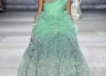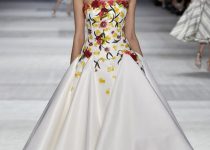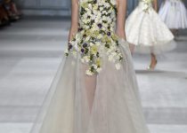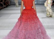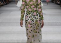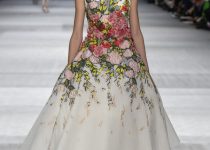 Mỗi cô gái đều mang trên mình một loài hoa: dành dành, hải quỳ, cúc, tử đằng, phong lữ, tử đinh hương… Những bông hoa không chỉ đẹp lộng lẫy mà còn ẩn chứa ý nghĩa về tình yêu và hi vọng. Những bộ cánh màu ombre (kỹ thuật dùng hai màu cùng tông, chuyển dần từ đậm sang nhạt hoặc ngược lại) cũng góp phần làm đẹp cho vườn hoa nhà Giambattista Valli.