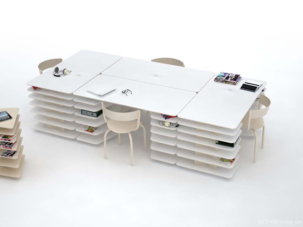 Điểm đặc biệt của Strates là các mô-đun được thiết kế để có thể tiện dụng trong việc lắp ghép cho phù hợp với từng không gian khác nhau. Kiểu dáng hình học được thiết kế thanh thoát khiến chiếc bàn này hoàn toàn có thể là một món đồ nội thất mang lại vẻ đẹp sang trọng cho căn phòng.