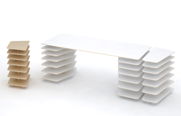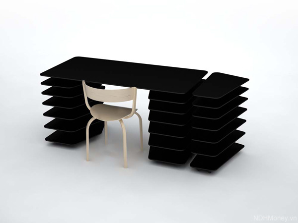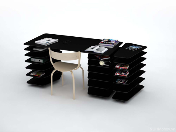 Nhà thiết kế Mathieu Lehanneur mới hoàn thành thiết kế bàn làm việc Strates (còn gọi là Strata) thanh thoát và tiện dụng với phần chân bàn là các giá sách dạng mô-đun.