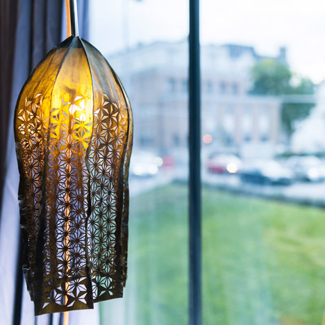 LuxeVN – Nhà thiết kế Julia Lohmann cho rằng những dải rong biển khô hoàn toàn có thể thay thế da, giấy hay nhựa để sử dụng trong các vật dụng hàng ngày – như chiếc đèn rong biển cắt bằng tia laser dưới đây.
