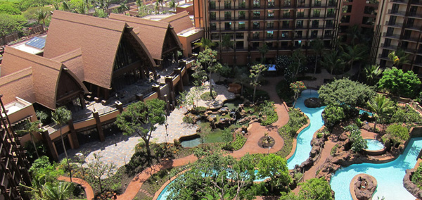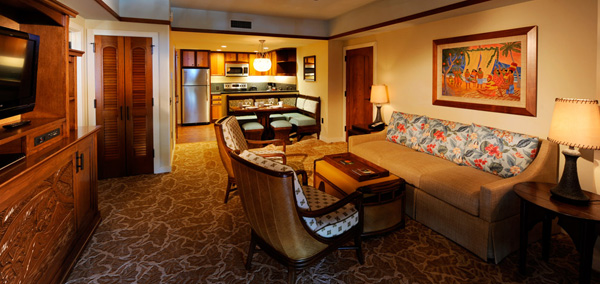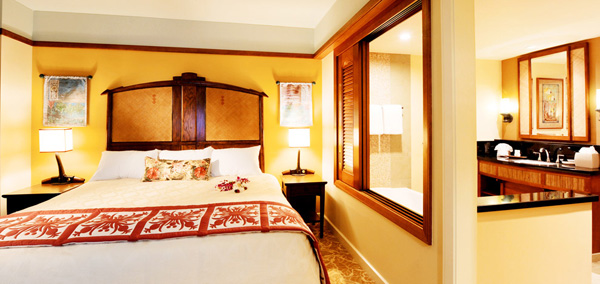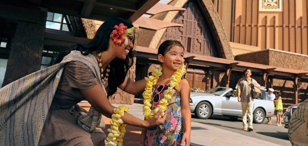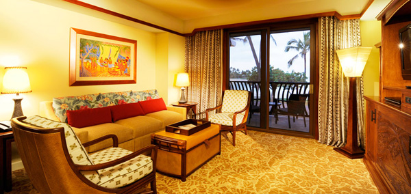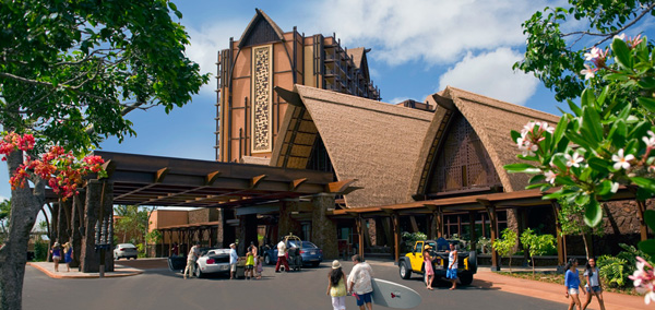 Hình ảnh Mickey, Minnie và Donald có thể được bắt gặp ở mỗi ngả rẽ hay trong phòng nghỉ. Tuy nhien, điểm nhấn chính của khu khách sạn lại nằm ở những nét văn hóa Hawaii đặc sắc. Nơi đây như kể lại những câu chuyện của vùng đất này với núi lửa, đường nước chảy và hành lang như những chiếc xuồng, trang trí bằng tranh tường và vải tapa phong cách Hawaii.