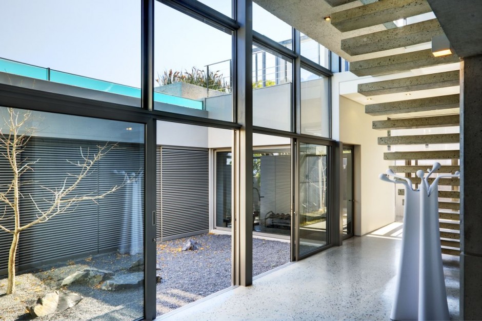Một điểm đặc biệt ở đây là hệ thống cửa kính đã được tận dụng triệt để để những người trong ngôi nhà này có thể “giao lưu” với thiên nhiên một cách gần gũi nhất. Cũng chính điều đó cũng đã đem lại sự điều hòa ánh sáng tuyệt đẹp cho toàn bộ căn nhà.