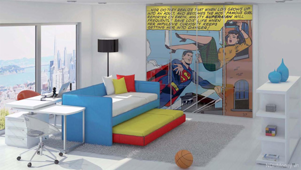Ý tưởng trang trí không gian riêng cho những cậu bé, cô bé bằng những hình ảnh từ những cuốn truyện tranh, phim hoạt hình ưa thích sẽ là phần thưởng lớn dành tặng bé yêu dịp Tết này.