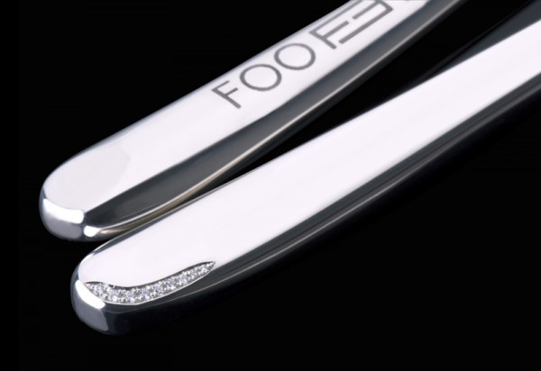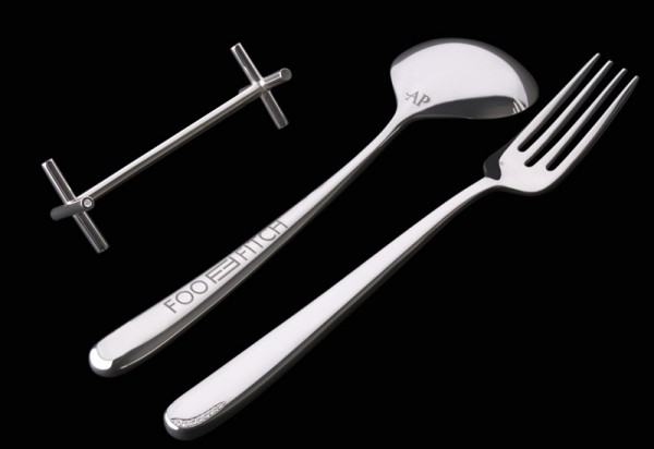 Loạt sản phẩm được thực hiện bởi nhà thiết kế Nick Fitch, chủ cửa hàng trang sức Nicholas James tại London và công ty chuyên thiết kế đồ trang trí bàn ăn Arthur Price. Một bộ Foo Fitch bao gồm một chiếc nĩa, một chiếc thìa, một đôi đũa cùng đế gác đũa xinh xắn để người dùng sử dụng khi muốn có thời gian nghỉ ngơi giữa bữa tiệc.