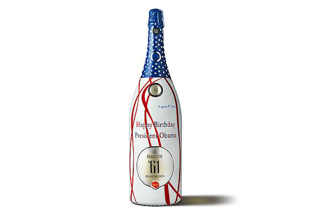 Một chai vang nổ Franciacorta DOCG ’61 Brut cỡ magnum (2,25 lít) được trang trí một lớp bọc mô phỏng quốc kì Mỹ, với những đường màu đỏ chạy trên nền trắng ở thân chai với dòng chữ trang trọng “Chúc mừng Sinh nhật Tổng thống Obama”. Ngay trên đó là dòng ghi ngày tháng cỡ chữ nhỏ hơn “4 tháng 8 năm 2011”. Phần cổ chai được bọc giấy màu xanh nước biển với những ngôi sao trắng.