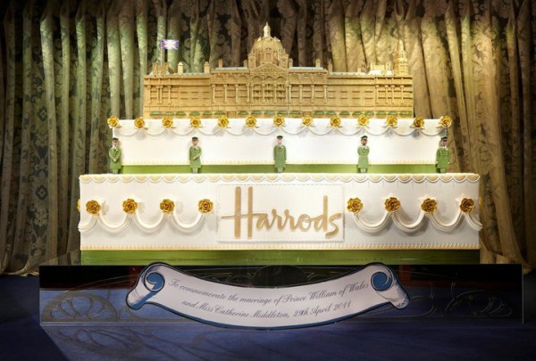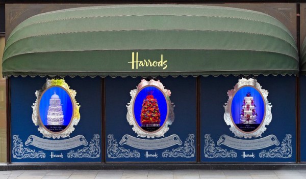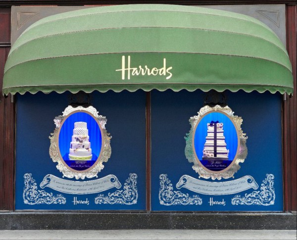 Harrods, khu mua sắm sang trọng nổi tiếng tại London, đã mời hàng loạt những tên tuổi thiết kế lớn tham gia thực hiện những chiếc bánh cưới đẹp mắt để mừng lễ cưới hoàng gia.