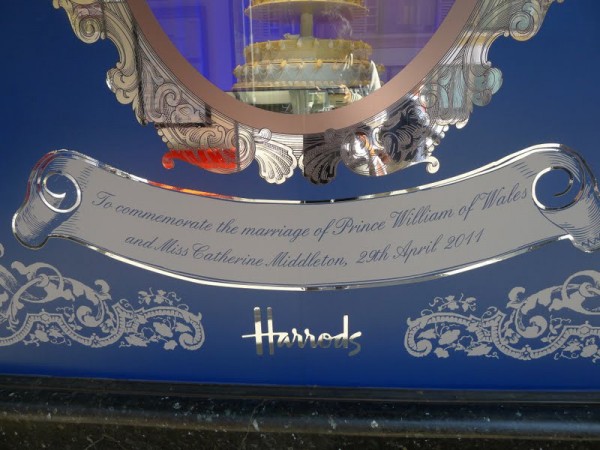 Những chiếc bánh cưới đều được trưng bày tại cửa sổ của các cửa hàng ở trung tâm thương mại từ ngày 26/4 – 30/4. Các nhà thiết kế đã dày công trang trí khung cửa với sắc xanh và bạc sang trọng nhằm tỏ lòng ngưỡng mộ tới câu chuyện tình cổ tích thời hiện đại của hoàng gia Anh. Ngoài bánh cưới, Harrods còn công bố nhiều mẫu váy cưới và các sản phẩm khác kỉ niệm ngày cưới của Hoàng tử Williams để khách hàng có dịp ngắm nhìn.